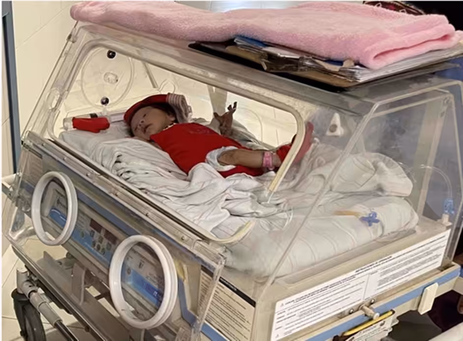 Newborn baby in an incubator. Photo: Jennifer Aniston.
