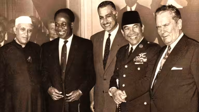 Featured image: Former Prime Minister of India, Jawaharlal Nehru, former President of Ghana, Kwame Nkrumah, former President of Egypt, Gamal Abdel Nasser, former President of Indonesia, Sukarno, and former President of Yugoslavia, Josip Tito, at the founding meeting of the Non Aligned Movement in 1969 in Belgrade. File photo.