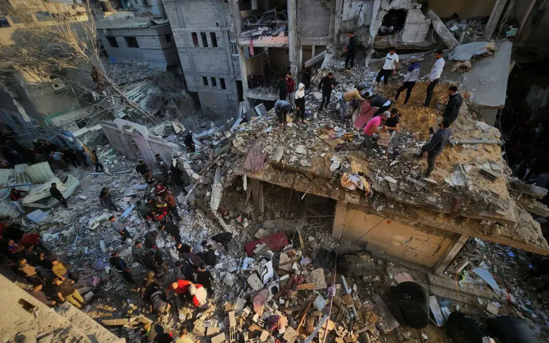 People search for casualties in the Gaza neighborhood of Jabaliya on Nov 4, 2023, following Israeli airstrikes over the previous few days. Photo: Anas Al-Shareef/Reuters.