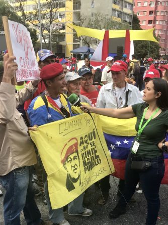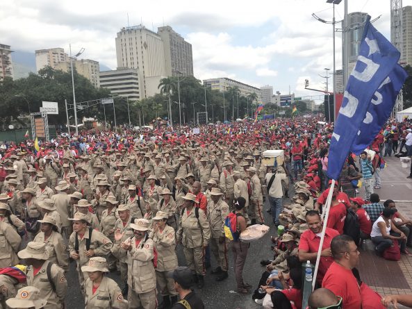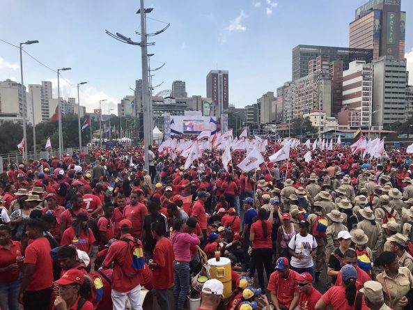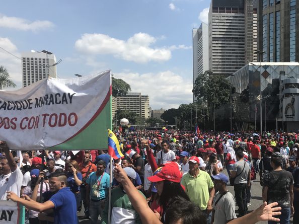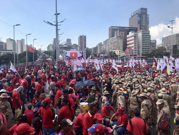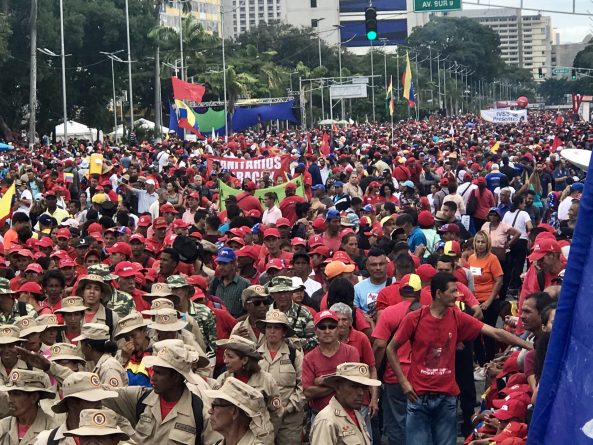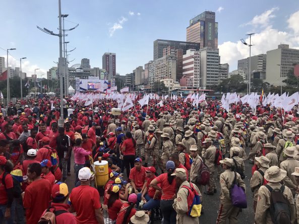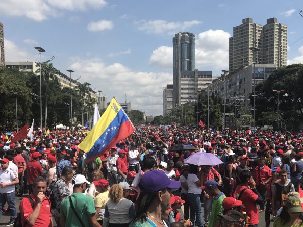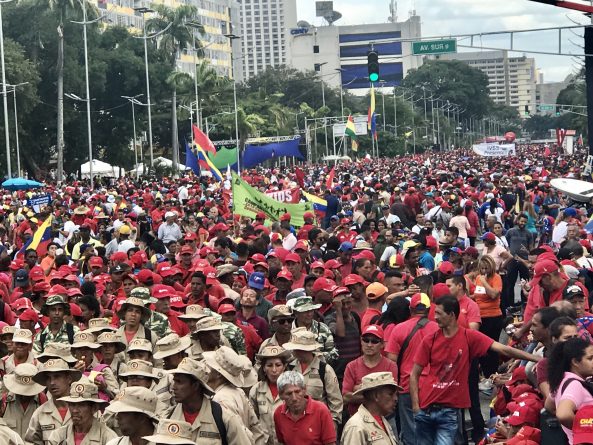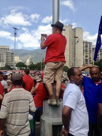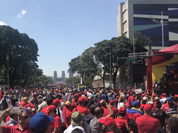Disregarding the call for the demonstration was made less than 72 hours before, the Chavistas from Caracas start filling the big Ave. Bolívar since 10 am. You could feel the happiness and the courage of these humble Venezuelans that are not going to allow a foreign intervention in Venezuela, even in the middle of the most harsh economic crisis promoted by the US.