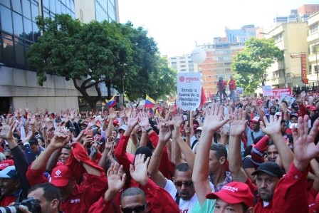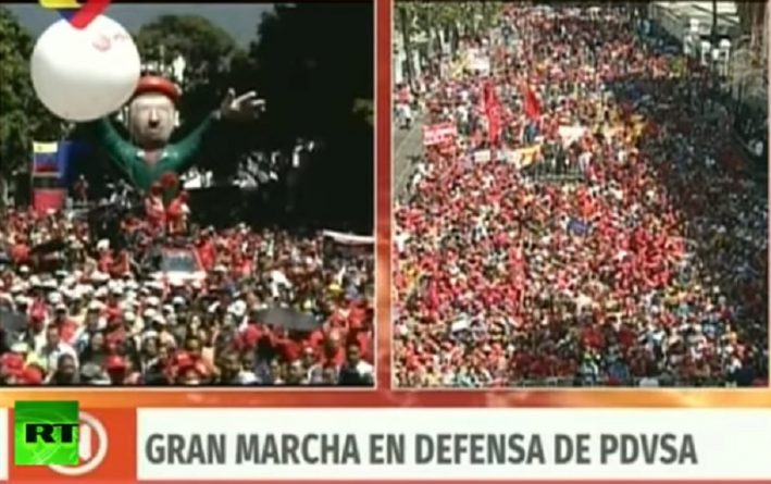A massive rally, called by Venezuelan oil workers is marching in Caracas in order to support legitimate president of the country amid a political standoff between the government and opposition.