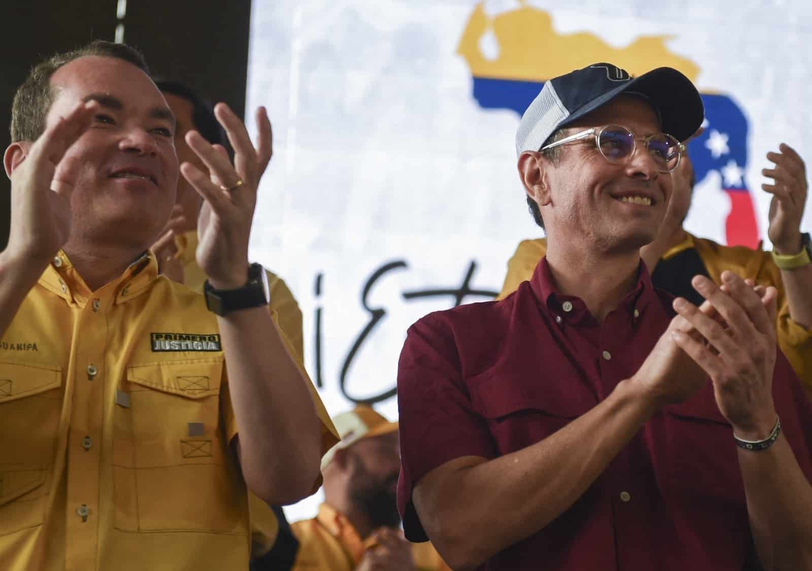 Venezuelan far-right Justice First party members Henrique Capriles (right) and Tomás Guanipa (left) during a political rally. Photo: File photo.