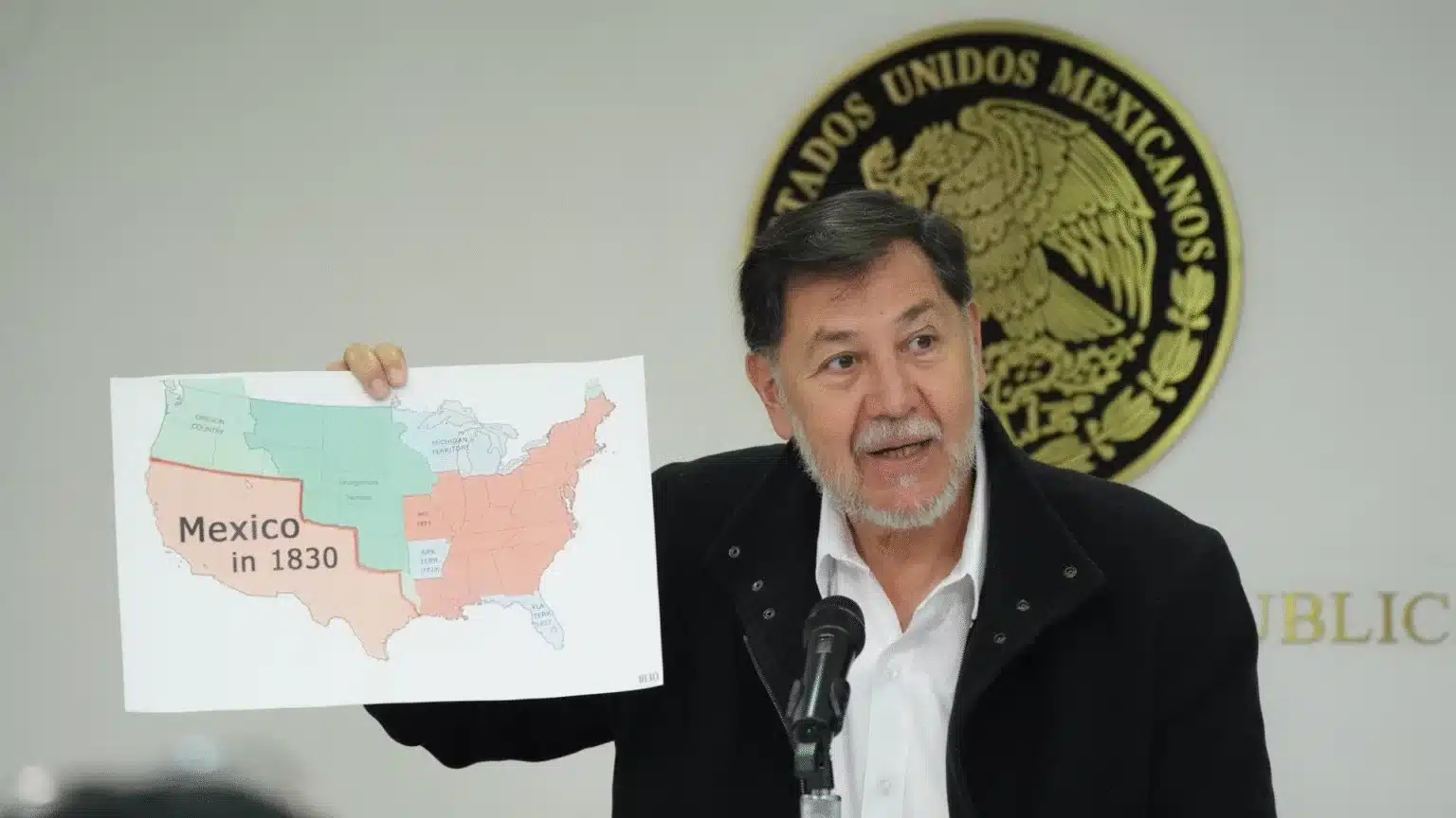 Noroña also took up the issue during Monday’s Senate press conference, referring to a map showing the geography of Mexico in 1830, when a great portion of what is now considered the United States was part of Mexico.
