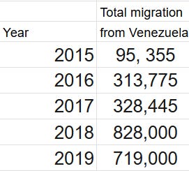 We believe that anti-Maduro sources have 1. grossly exaggerated the scale of migration from Venezuela since 2015, 2. ignored that US sanctions have caused such migration as did occur, and 3. also ignored mass migration from US client states like Ecuador.