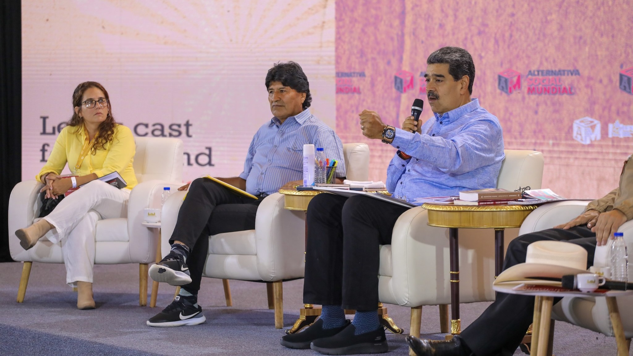 The second day of the gathering concluded with a discussion led by Venezuelan President Nicolás Maduro with participation from former Bolivian President Evo Morales, former Honduran President Mel Zelaya, national leader of the MST João Pedro Stedile, and Cuban popular educator and parliamentarian Llanisca Lugo.