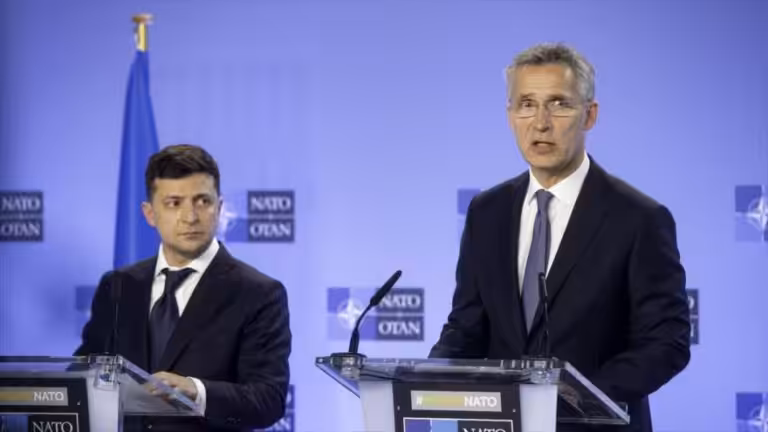 Featured image: NATO Head Jens Stoltenberg (right) and Ukraine President Volodymyr Zelensky (left) during a press conference on June 4, 2019. File photo.