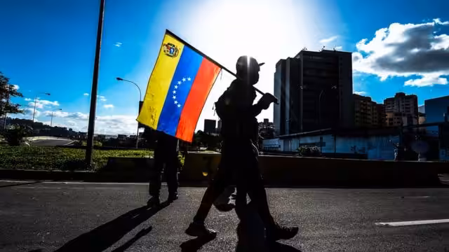 A PDVSA building and a Venezuelan flag. Photo: BBC.