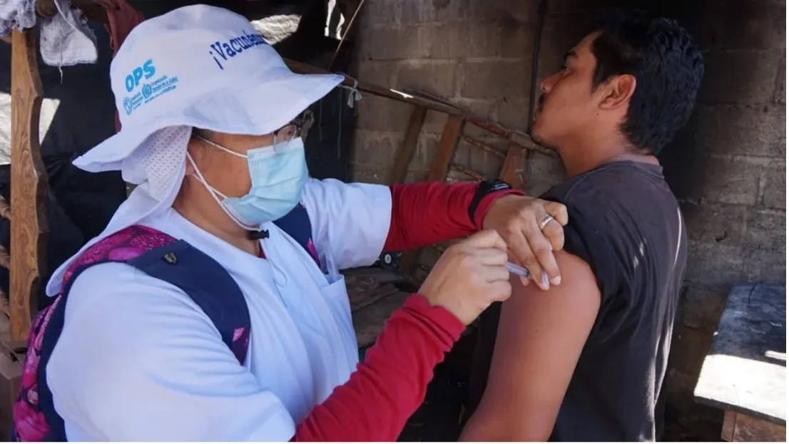 PAHO medical personnel vaccinating a person. Photo: PAHO.
