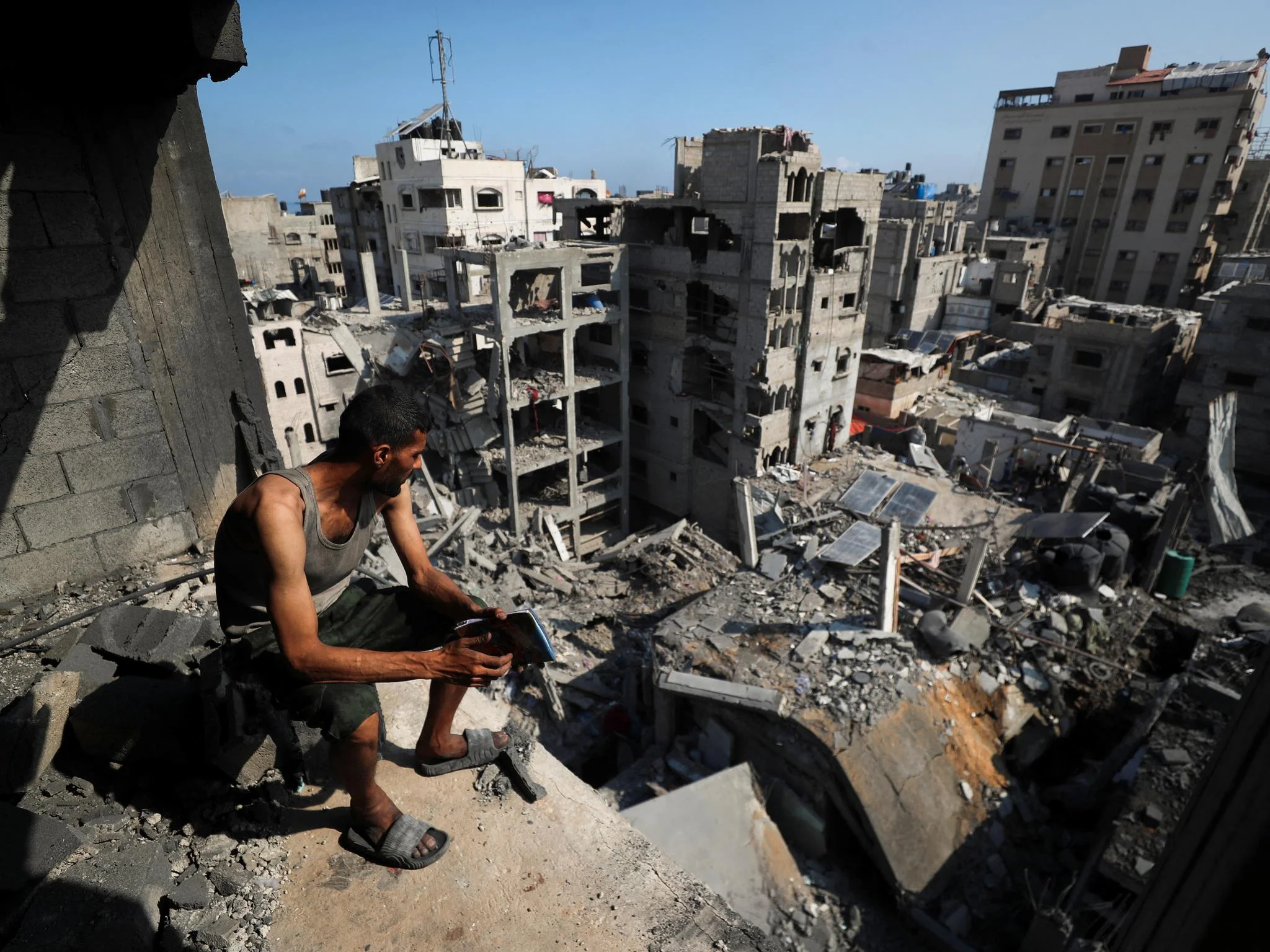 A Palestinian man looks on at the site of an Israeli strike in September 2025 that massively destroyed residential buildings. Photo: Mahmoud Issa/Reuters/file photo.