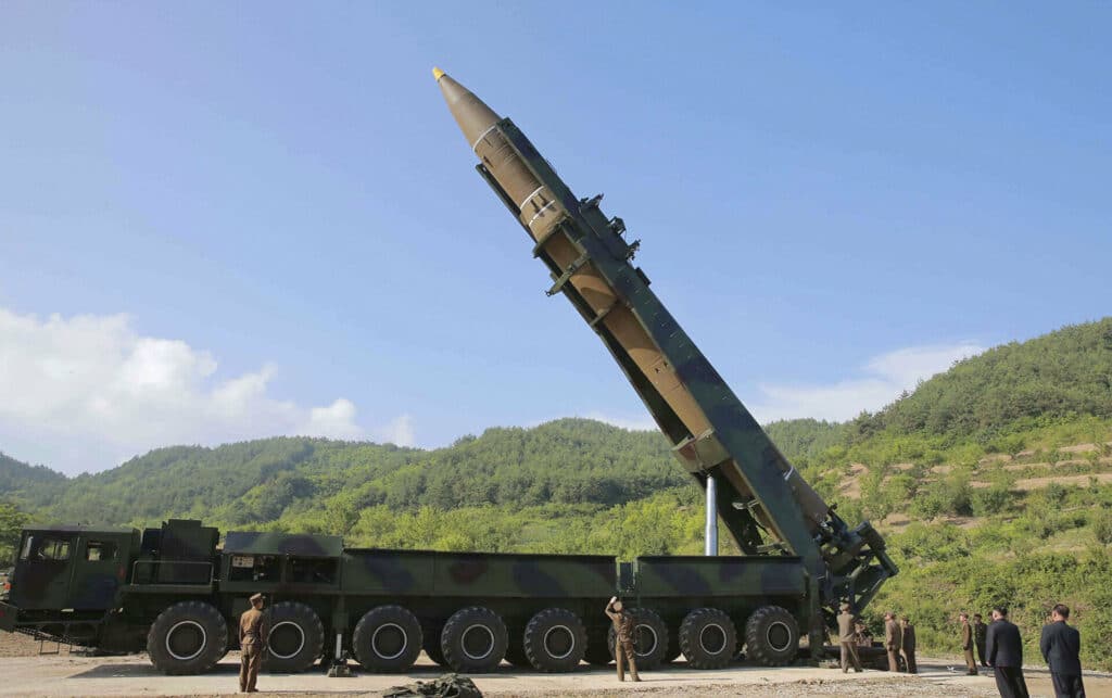 North Korea's leader Kim Jong-un inspects a ballistic missile. File photo.