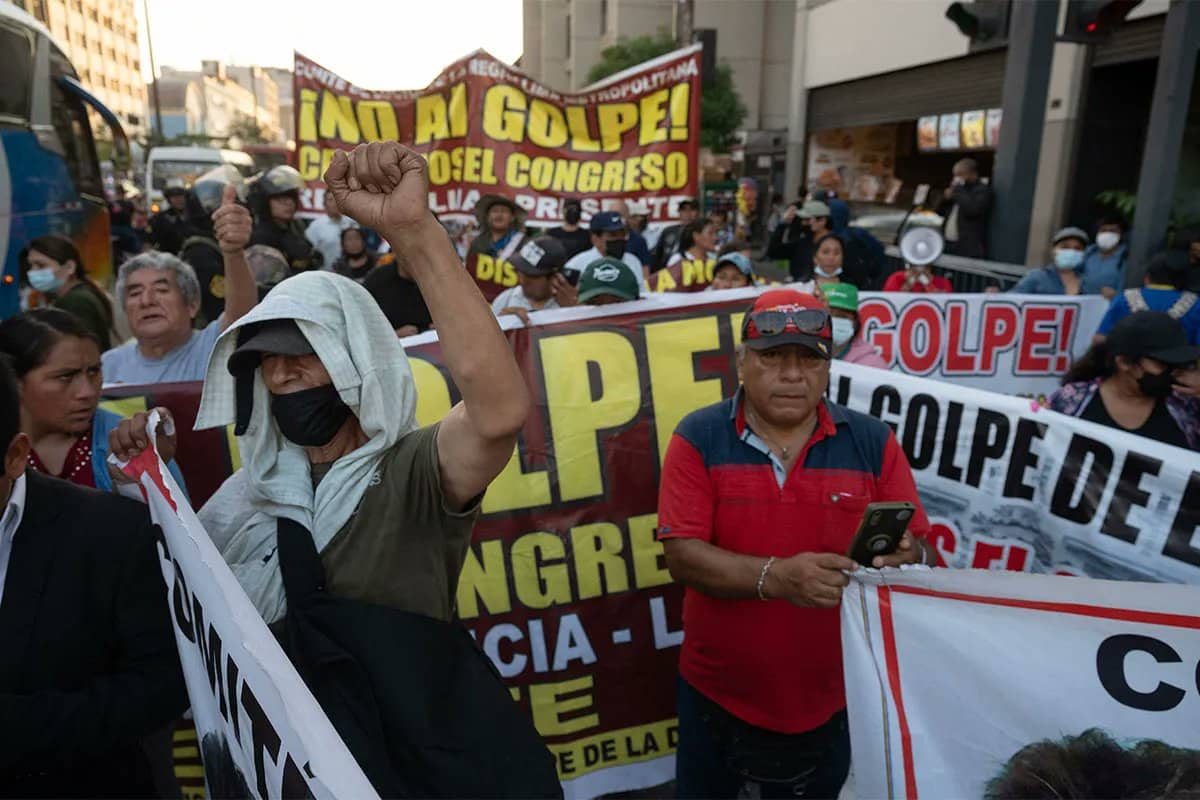 Peruvians protest in Lima in condemnation of the coup against President Pedro Castillo. Photo: El País.