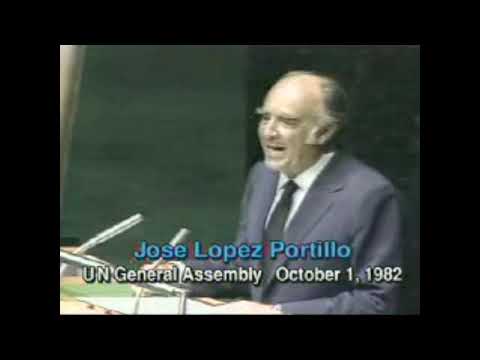 Portillo moved quickly to nationalize much of Mexico’s oil while preparing for capital controls to combat speculation, and manoeuvred to use Mexico’s oil revenues to maximize advanced technological growth in agriculture and nuclear energy as outlined in detail in Operation Juarez. Then came Portillo’s greatest moment when on October 1st 1982, he stood for all people of the earth at the United Nations in speech which must be heard to be believed.
