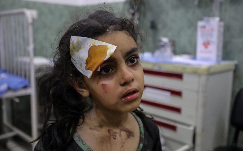 An injured Palestinian girl is taken to hospital following Israeli airstrikes over Rafah, located in the southern Gaza. Photo: Anadolu Agency.