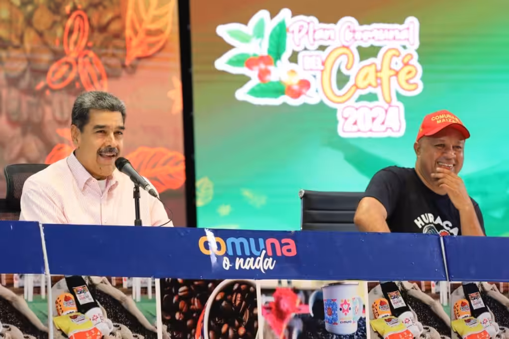 Venezuelan President Nicolás Maduro (left) with Minister of Communes Ángel Prado (right) at an official event in Caracas, October 15, 2024. Photo: MIPPCI.