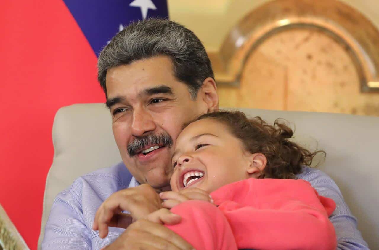 Venezuelan President Nicolás Maduro holding one of the seven children rescued from the United States at Miraflores Palace, Caracas, on Friday, July 18, 2025. Photo: Presidential Press.