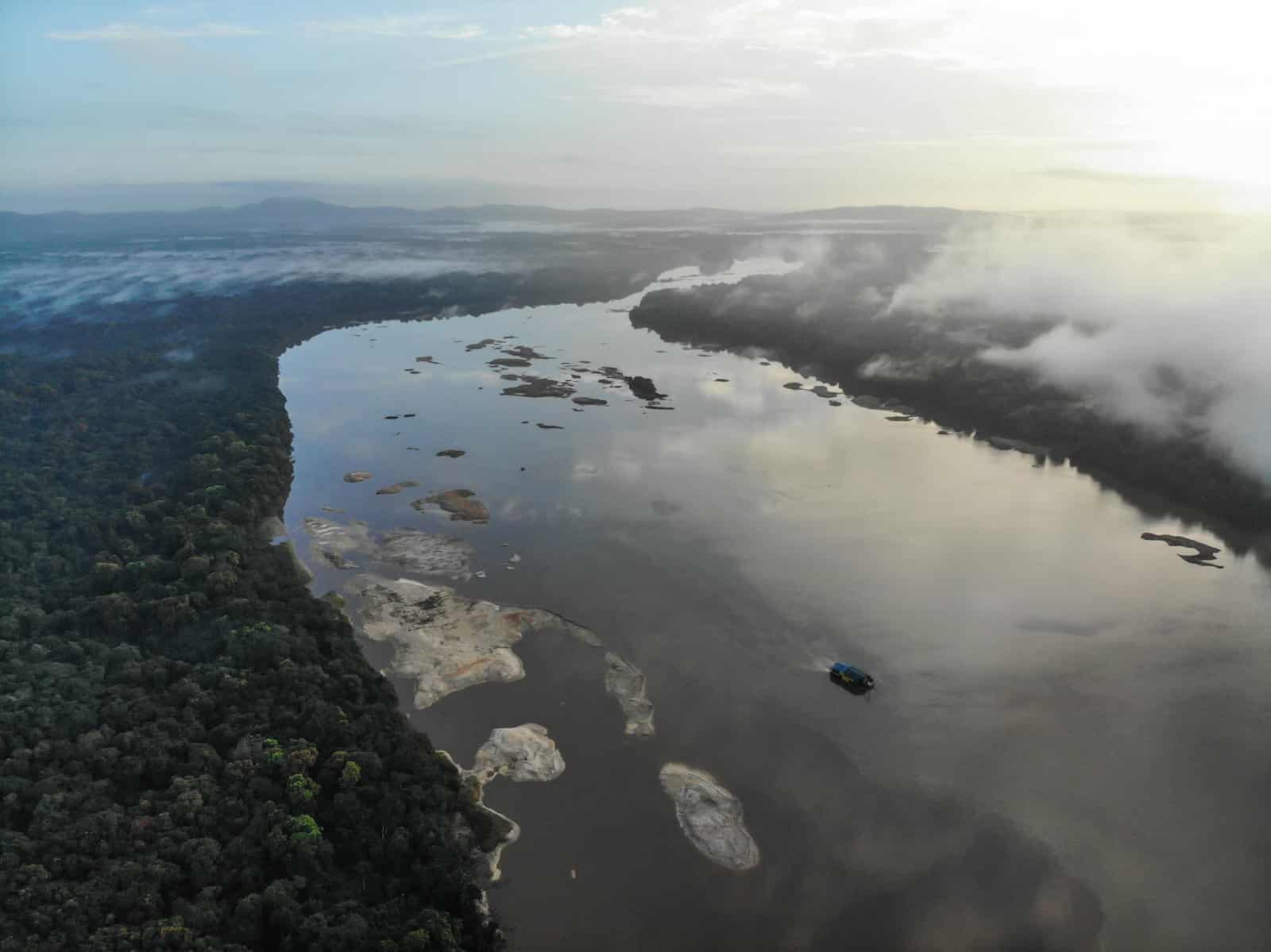 Aerial shot of the Essequibo River, part of the region disputed over by Venezuela and Guyana. Photo: Jon Williams.