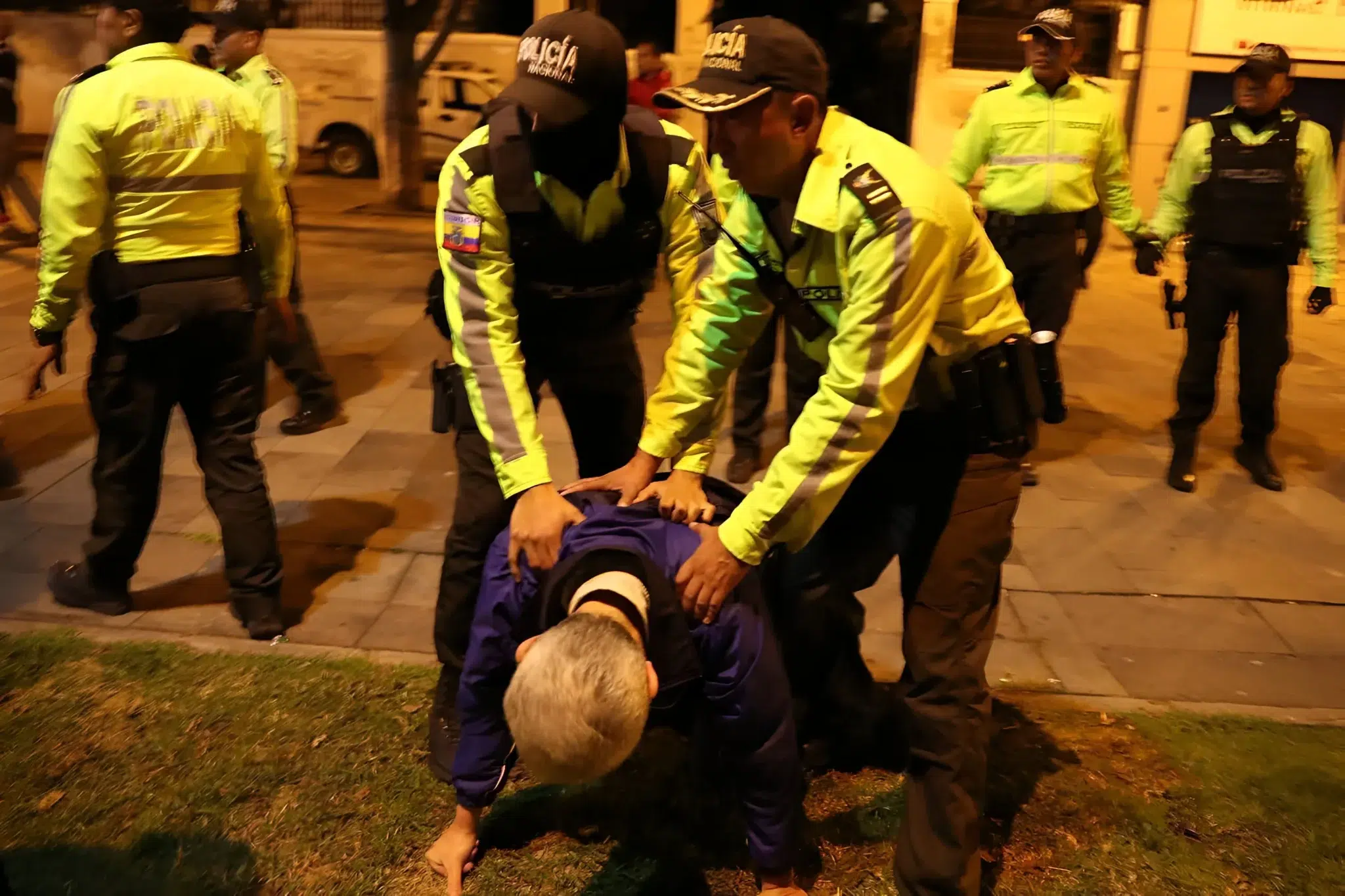 Mexican diplomat Roberto Canseco, charge d'affaires of the Mexican embassy in Ecuador, being pushed to the ground by Ecuadorian police while the diplomat was trying to stop the kidnapping of Jorge Glass. Photo: X/@virgiliohernand.