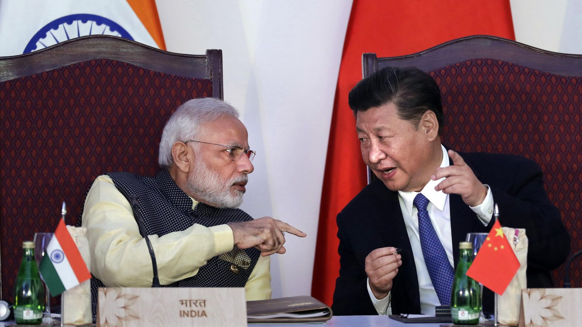 Indian Prime Minister Narendra Modi, left, talking with Chinese President Xi Jinping in 2016. Photo: AP/Manish Swarup.