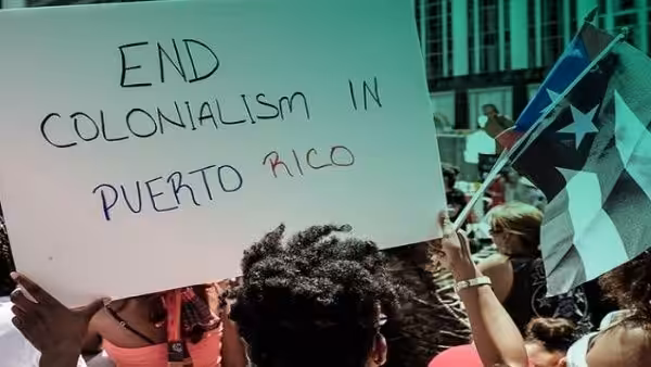Protesters in Puerto Rico raise a banner demanding an end to US colonization of the island. Photo: Progressive International.