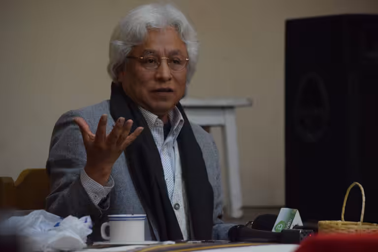 Bolivian analyst Rafael Bautista during a 2019 conference in La Paz, Bolivia. Photo: Prensa Latina/File photo.