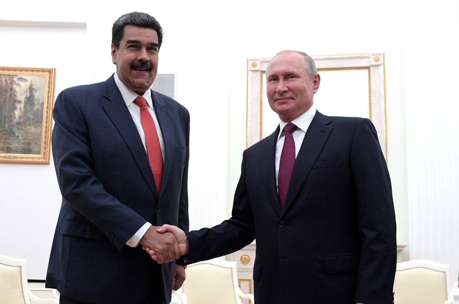 Venezuelan President Nicolás Maduro (left) and Russian President Vladimir Putin (right) shake hands during their meeting in Moscow, Russia, September 27, 2019. Photo: Anadolu Agency.
