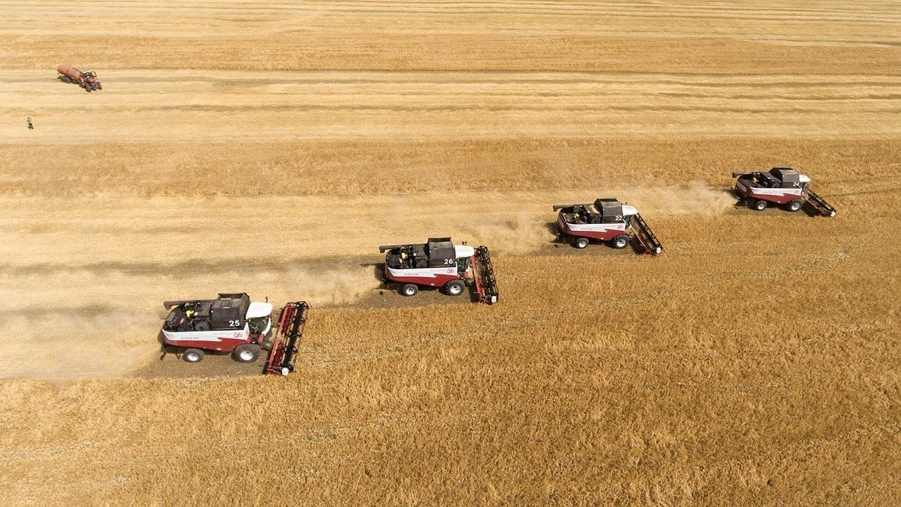 Tractors on a wheat field. Photo: Nikolay Gyngazov/Global Look Press.