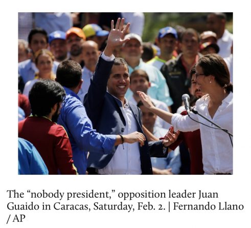 Trump has lined up a “coalition of the willing,” including right-wing governments in Latin America, Canada, and the EU, that has recognized Guaidó as president. However, so far efforts to recognize Guaidó have lost in the United Nations. Only 20 of 200 international governments have recognized Guaidó as president. Meanwhile, Mexico and Uruguay are working with the Vatican to initiate a dialogue to solve the crisis peacefully.