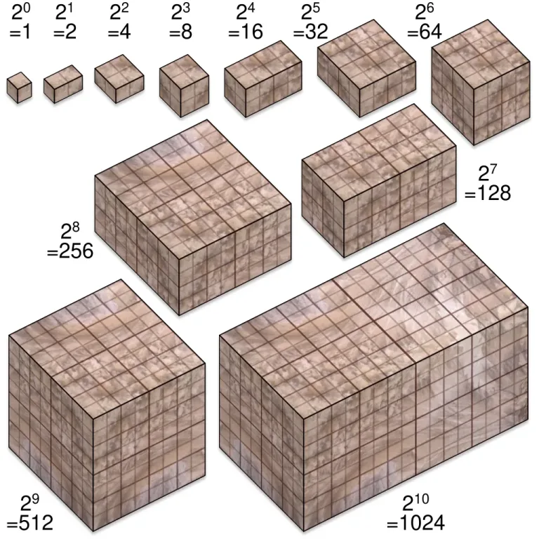 Powers of 2. Photo: Cmglee - Own work, CC BY-SA 4.0, https://commons.wikimedia.org/w/index.php?curid=86587380