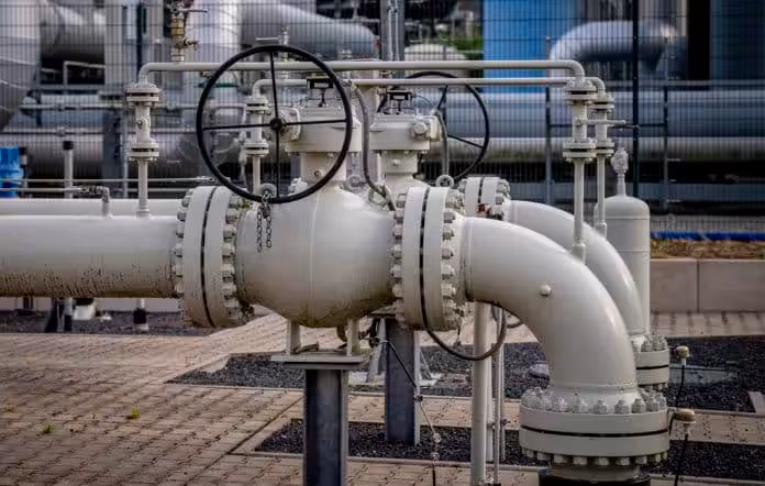 Pipes of the gas storage plant Reckrod, part of Nord Stream 1, near Eiterfeld, central Germany, photographed on July 14, 2022. Photo: Michael Probst/AP.