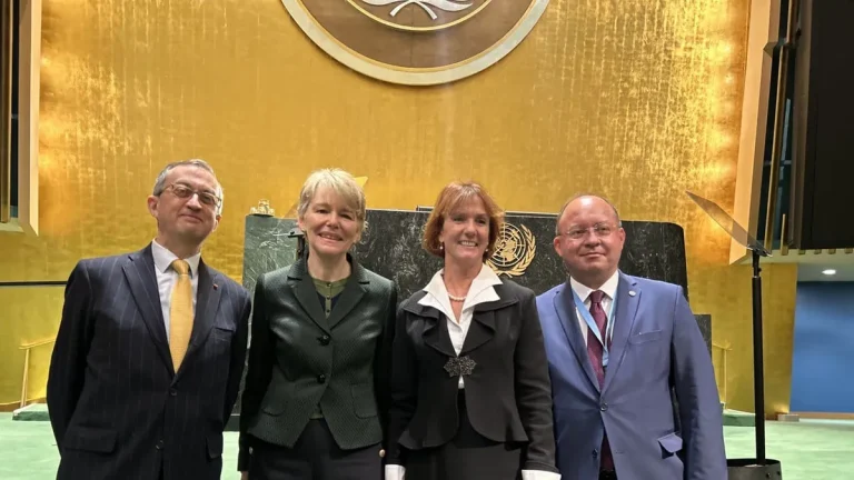 Four of the five newly-appointed ICJ judges, from left to right: Juan Gómez-Robledo, Hilary Charlesworth, Sarah Cleveland, and Bogdan-Lucian Aurescu. Photo: UN News.