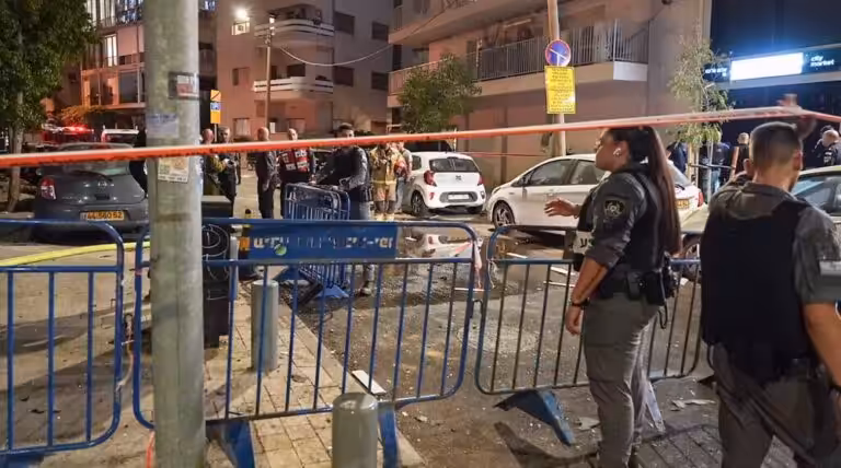 Members of Israeli forces are seen where a drone exploded in Tel Aviv on July 19, 2024. Photo: AFP.