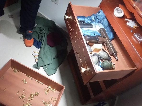 Meanwhile, he claimed that the group was housed in the Claudia building, seizing within it a submachine gun with sound suppressor, a Glock pistol, 3 grenades, 200 9mm caliber cartridges, 3 military uniforms and two cell phones, respectively.