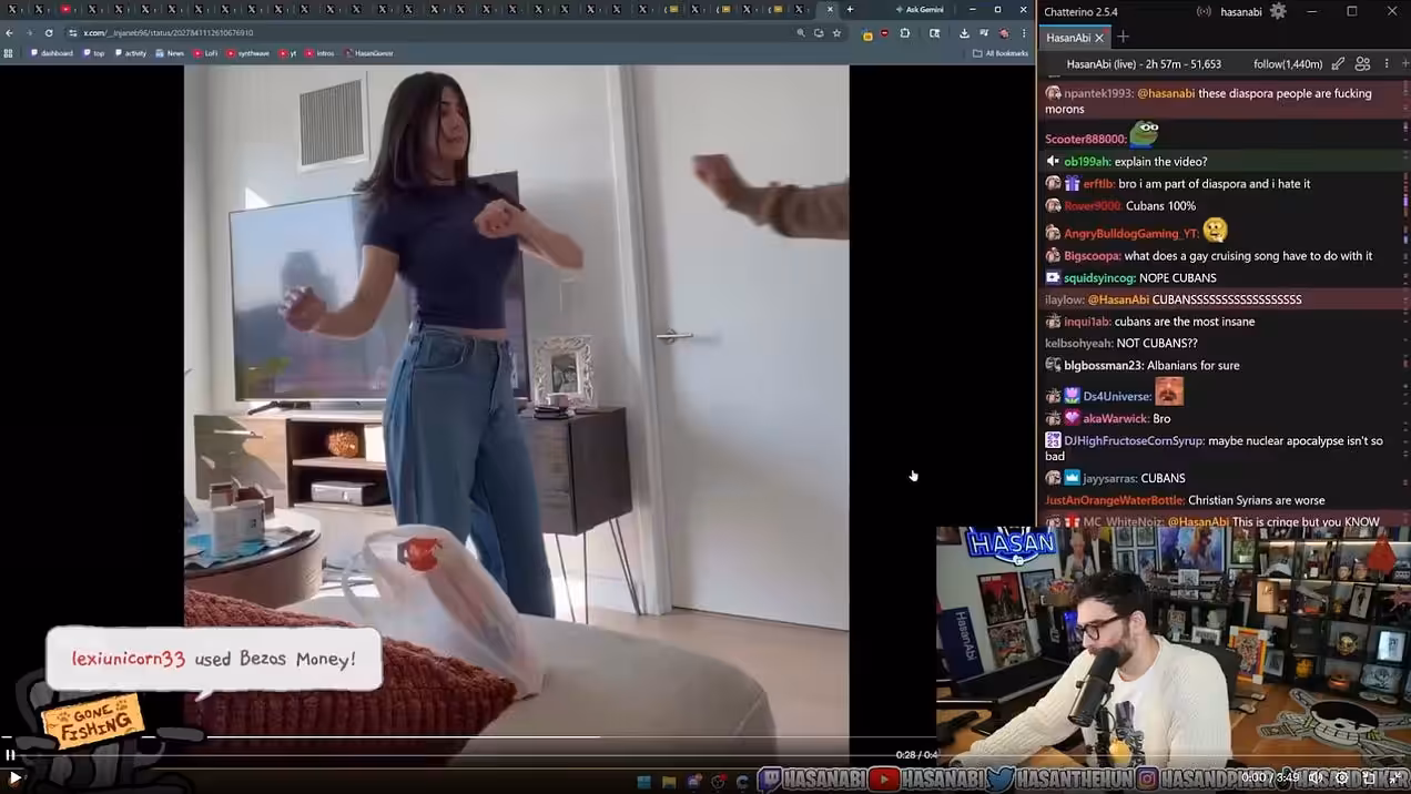 Hasan expresses bafflement at people dancing while Iran is being bombed. Photo: X/@HasanabiProd/screenshot.