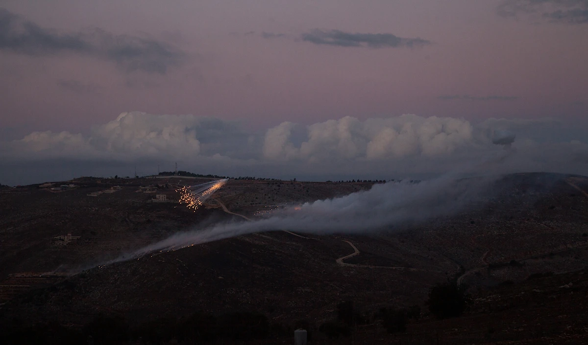 Artillery fire from an Israeli position hits the hills near the outskirts of the border town of Odaisseh in southern Lebanon. Photo: Hasan Fneich/AFP/Getty Images.