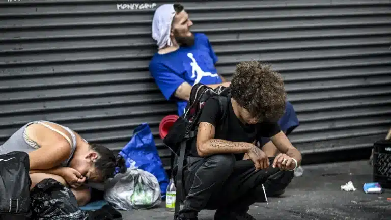 Homeless drug-addicts on a sidewalk in Philadelphia, USA. Photo: Reporte Asia.