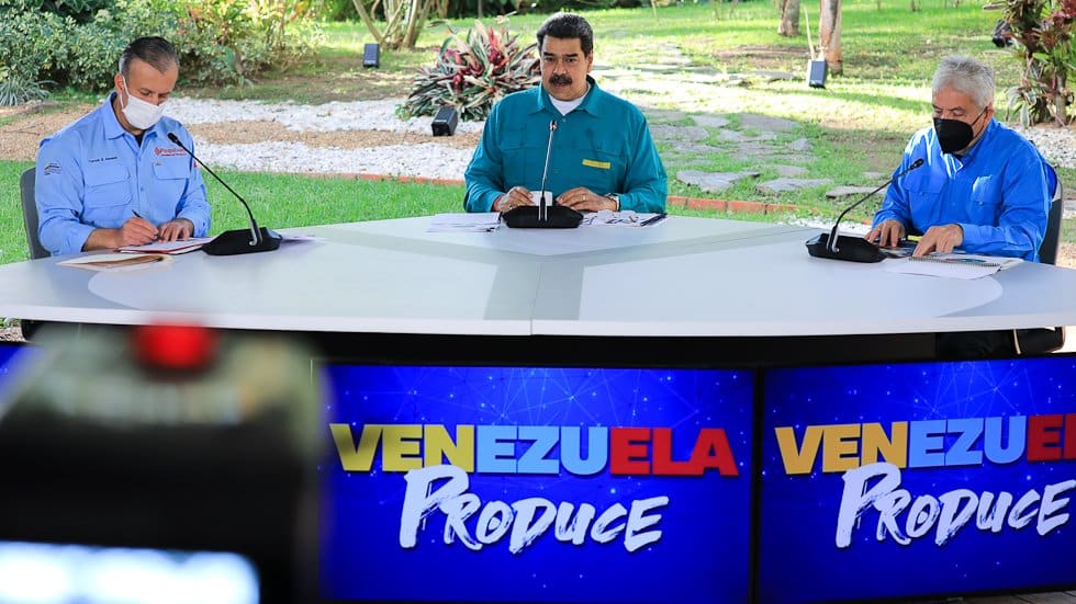 President Nicolás Maduro (center), together with Oil Minister Tareck El Aissami (left) and the minister for agriculture and land, Wilmar Castro Soteldo (right). Photo: Presidential Press.