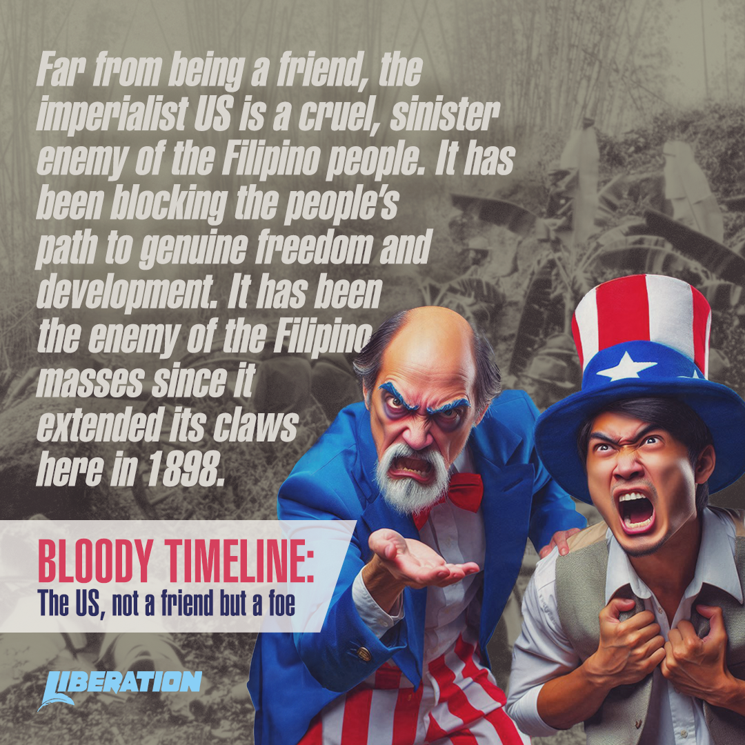 Far from being a friend, the imperialist US is a cruel, sinister enemy of the Filipino people. It has been blocking the people’s path to genuine freedom and development. It has been the enemy of the Filipino masses since it extended its claws here in 1898.