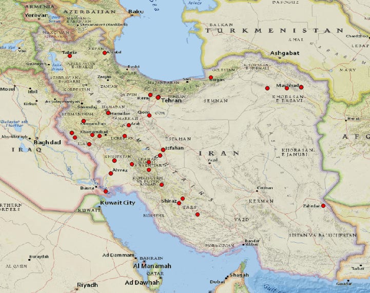 I reviewed the main news articles in the New York Times and the Washington Post on the protests from December 30 through to January 15. I was looking in particular at events described and the sourcing of the claims. NYT and WaPo are outlets that are against the Iranian government and in favor of US and Israeli policy towards Iran (regime change, destruction of the state, partition, etc.) I also reviewed all of the videos and comments posted by the pro-Iran aggregator @AryJeay on twitter, “Fotros Resistance” on telegram. I took screenshots of each important video and saved important text from the articles as a slight hedge against the impermanence of the internet.
