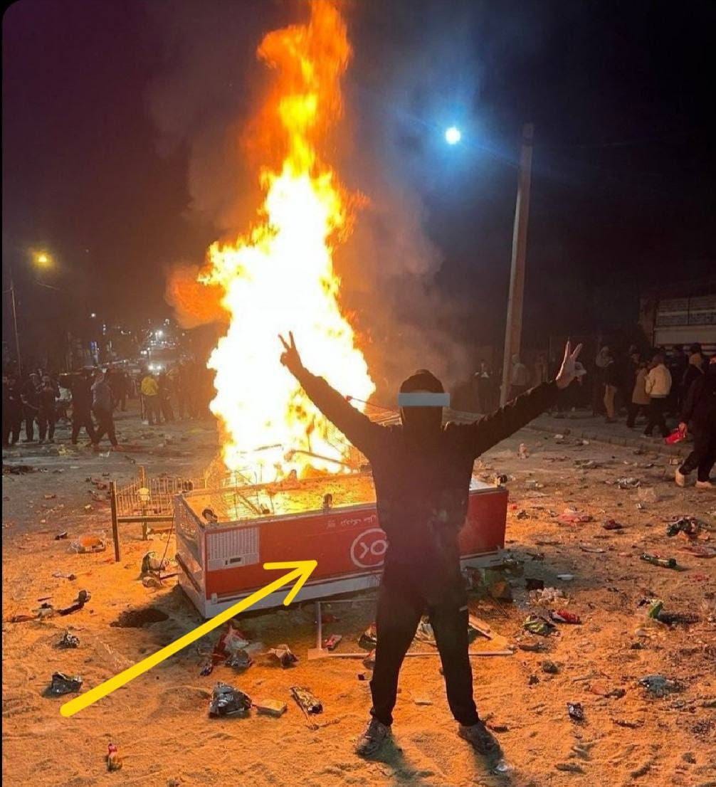 January 6. Abdanan. Protesters loot a supermarket, Ofogh Kourosh, dump all the rice in the street, and take selfies (does this remind you of anything?)