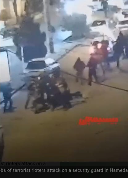 Hamedan, January 1, rioters jump a security guard and beat him down (CCTV).