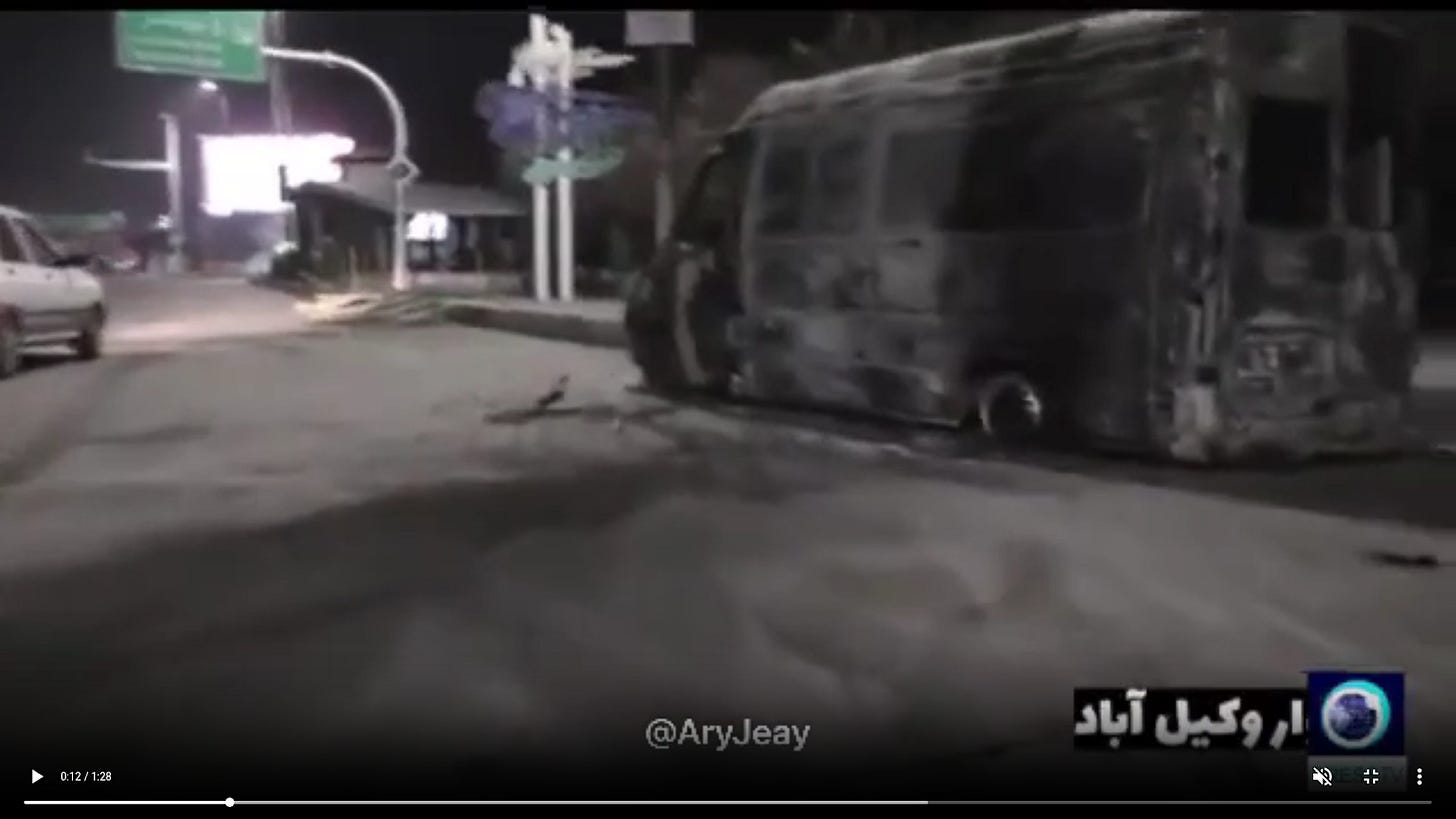 January 10, rioters attack and burn a bus in Isfahan. CCTV footage.