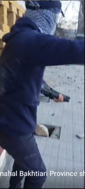 January 9, 8:50pm. Shushtar videos of rifle man and shotgun man, and of a female rioter with a machete.