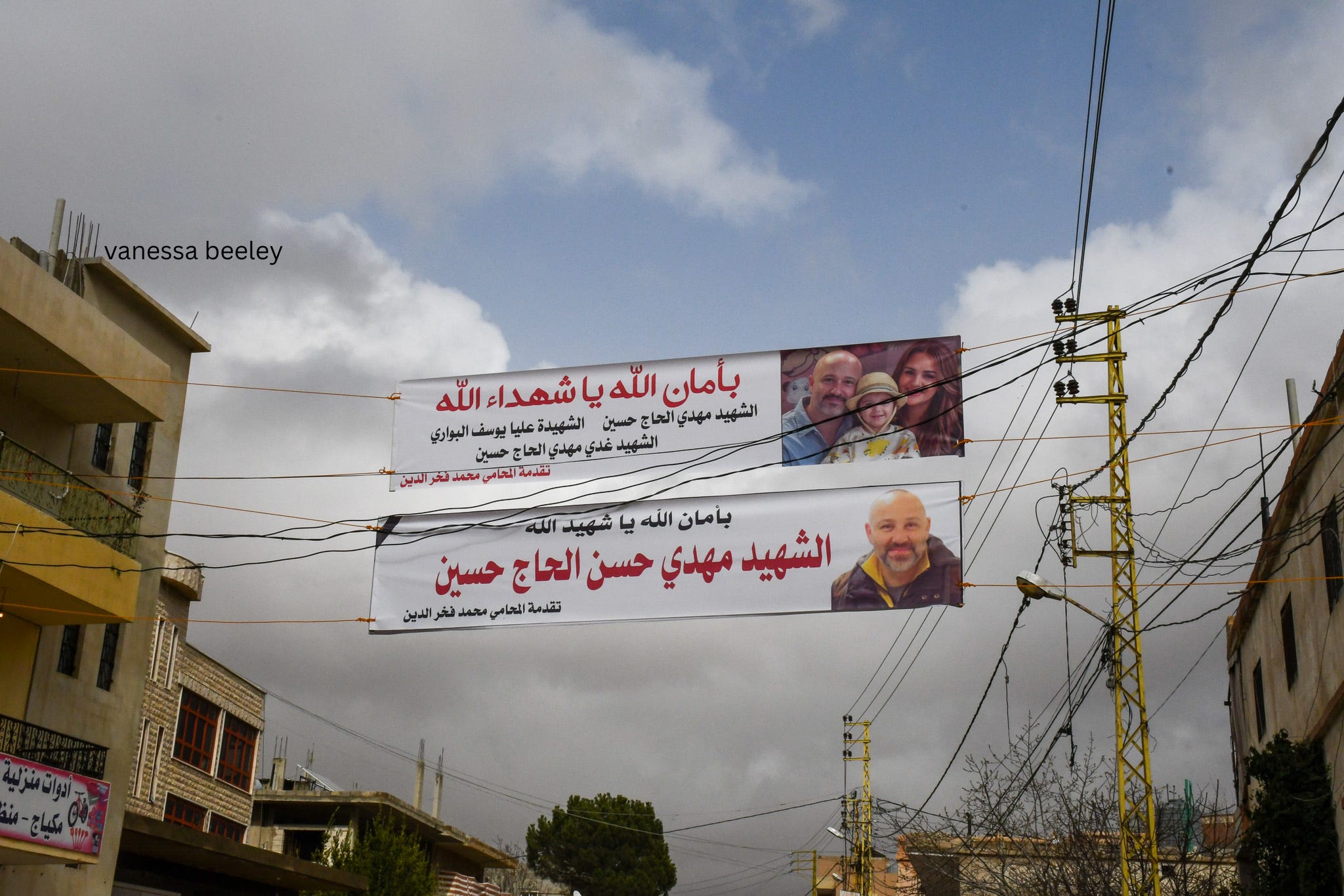 When we left this scene of murder for the next we passed under banners depicting the young family torn from life by the Zionist war jets.