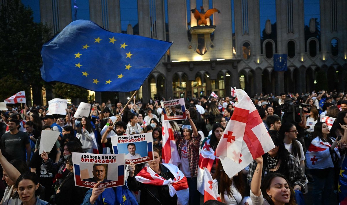 Demonstrators rally outside the Georgian parliament. Photo: Vano Shlamov/AFP/file photo.