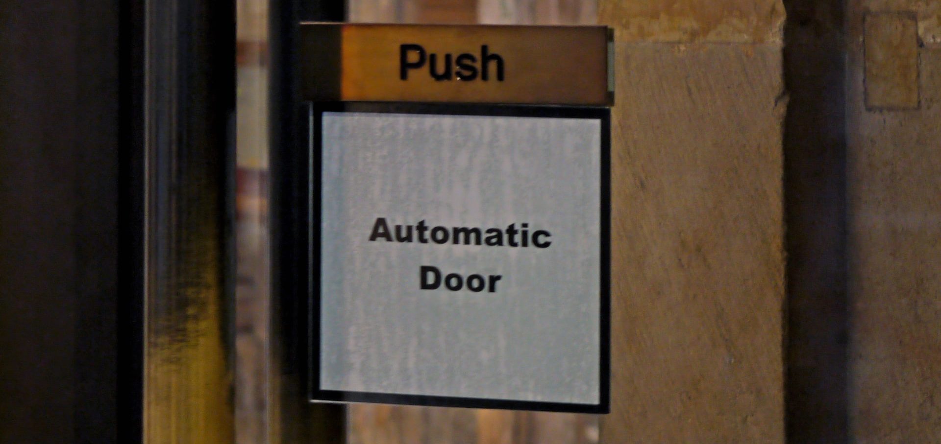 'Push: Automatic Door.' reads a sign. Photo: Substack.