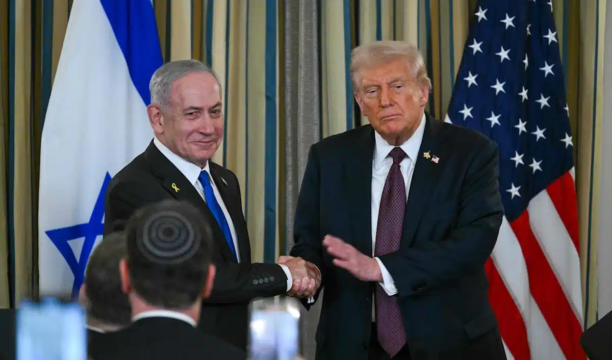 U.S. President Donald Trump and Israeli Prime Minister Benjamin Netanyahu at the White House. The two leaders met to announce an agreement on a U.S.-led peace plan to end the Israeli War. Photo: AFP.
