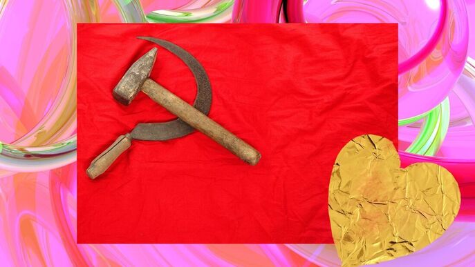 Photo composition showing a Soviet Union flag next to a golden heart. Photo: Midwestern Marx.