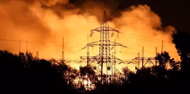A fire raging at the heat and power plant TETS-5 in Kharkiv in northern Ukraine after it was hit by a Russian missile on 11 September.Photo: Reuters/Scanpix.