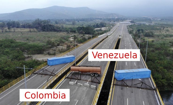 Nicolas Maduro‘s regime blocked the Tienditas International Bridge with a giant orange tanker, two large blue containers and makeshift fencing.
