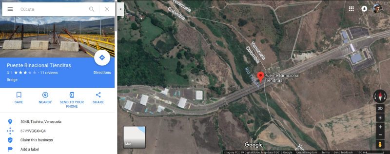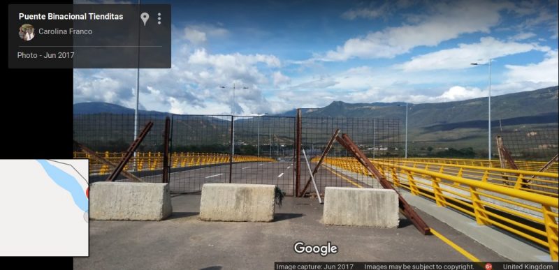 The Google translation may not be perfect, but it seems that Tienditas Bridge has never opened even though it was finished three years ago, due to a dispute between Colombia and Venezuela. And the now familiar “rusty gate” has been there all this time. It’s a complete falsehood to say that Maduro “blocked” the bridge this week, that it must “reopen”, or that Venezuela erected “makeshift fencing” this week.